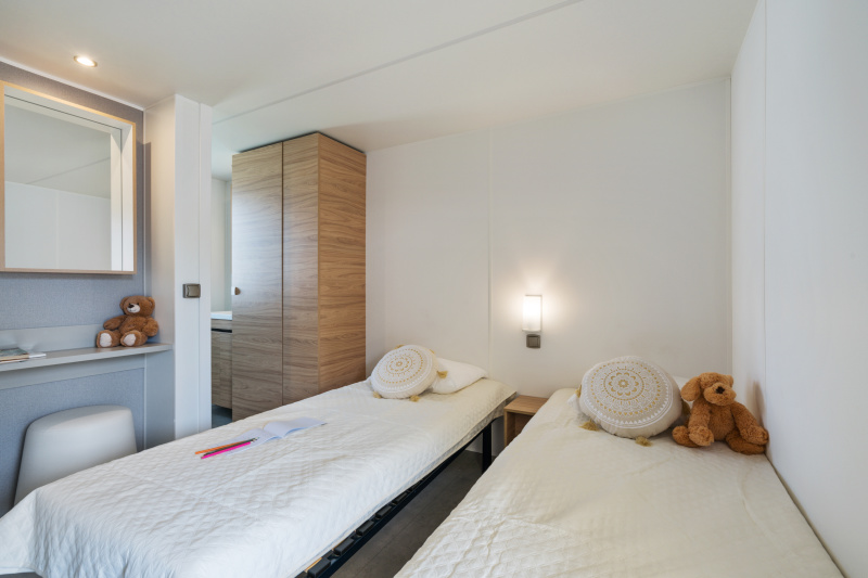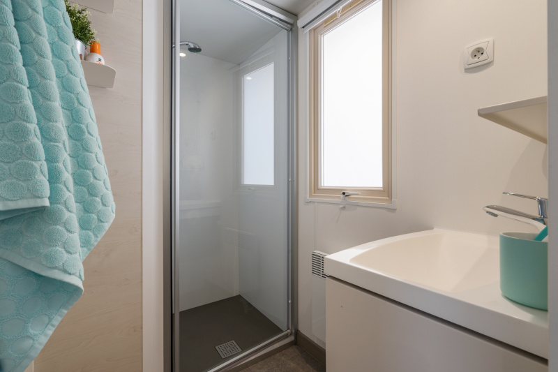 C'est un grand emplacement de 170 m² sur lequel 2 mobil-homes partagent une grande terrasse !