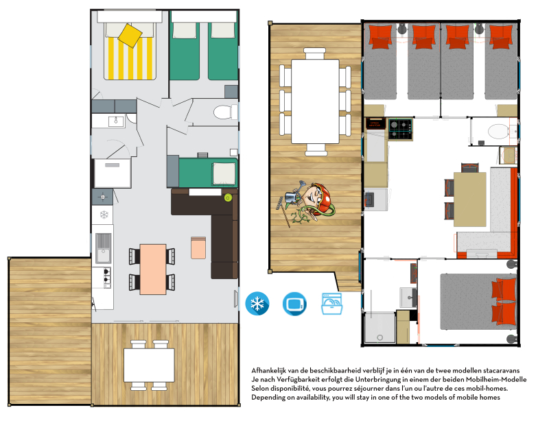 Un grand mobil-home avec 2 salles de bain et un WC privé ! C'est le concept offrant confort, tranquillité et espace de vie !